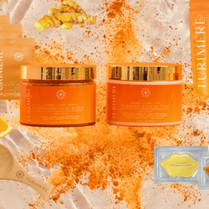 - Turmeric Luxe Butter – Our signature moisturizer that delivers deep hydration while turmeric’s anti-inflammatory properties work to calm skin and promote an even, radiant complexion